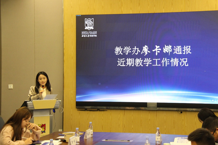 教学工作办公室主任廖卡娜通报近期教学工作情况。她希望班主任老师密切关注班级学生学业情况,积极搭建师生双向沟通桥梁,鼓励引导学生参加科研活动,共同做好人才培养工作。