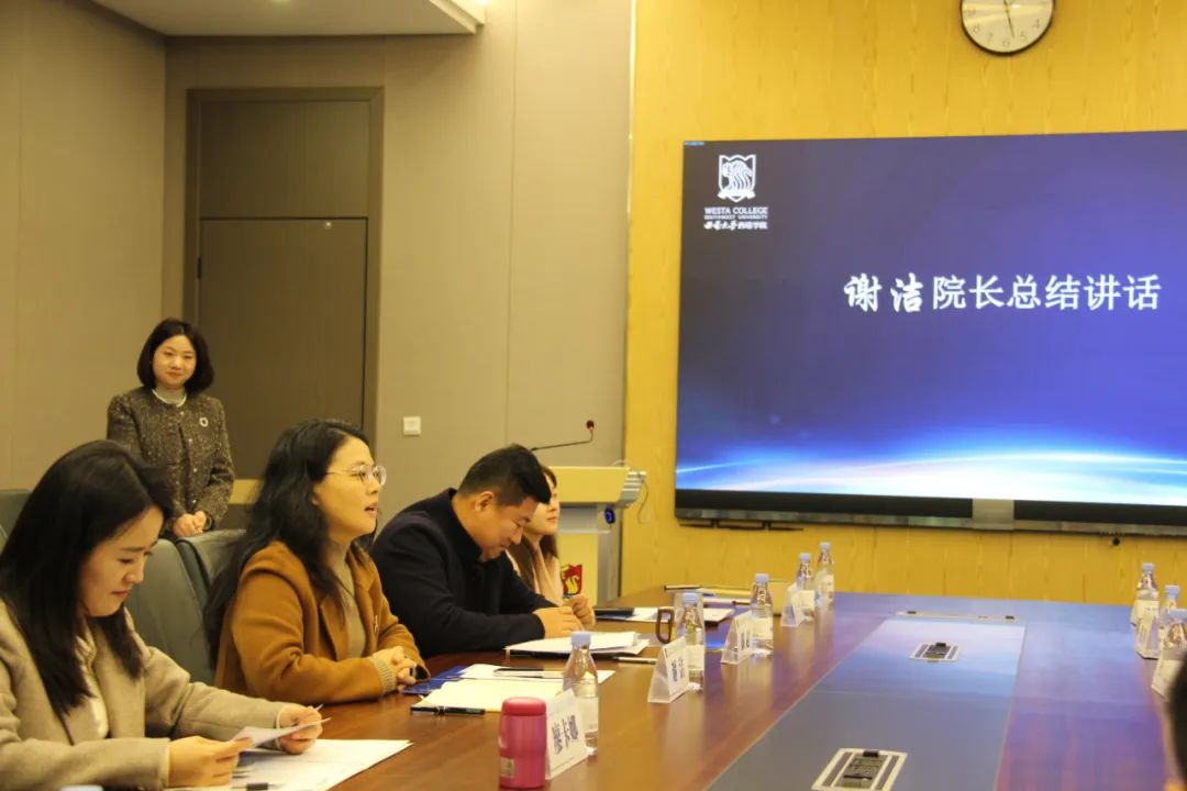 会议最后,谢洁院长进行总结讲话。谢院长首先肯定和感谢班主任在利来国际 国际化人才培养过程中做出的贡献。她真诚希望能与班主任老师携手,充分利用好合作高校优质资源,助力西塔学子实现高质量升学。同时,她希望全体班主任积极深入课堂听课,多渠道与学生沟通交流,关注学生发展需求,主动挖掘学生潜力,推动利来国际 人才培养质量稳步提升。