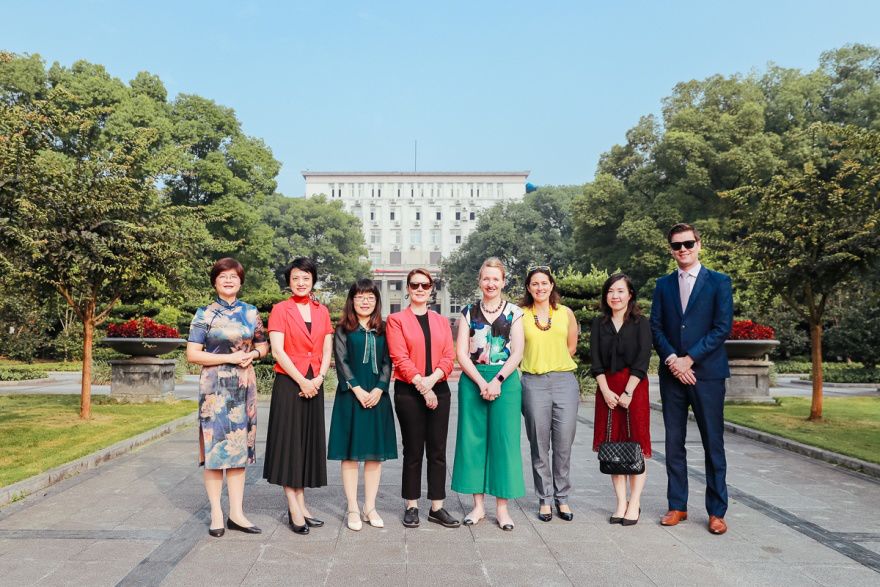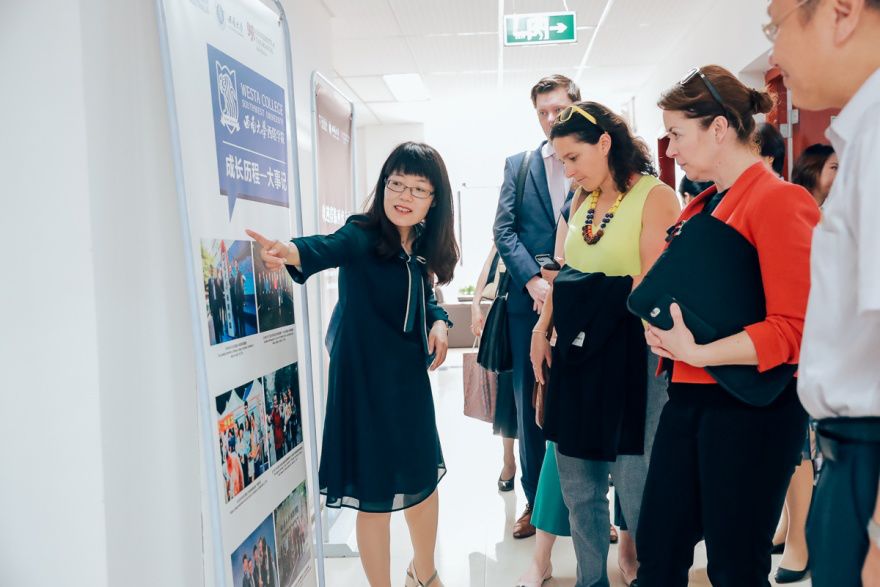 7月10日上午,澳大利亚教育部国际司副司长格蕾塔·多琪(Greta Doherty)、职教培训改革司副司长卡特莱娜·罗勒(Katerina Lawler),澳大利亚驻华大使馆公使衔参赞(教育与研究)贺蓉歌(Brooke Hartigan)、驻华大使馆一秘(教育与研究)罗杰德(Jarrod Ross)等一行六人访问西南大学,同时参观利来国际 ,了解利来国际 成立三年以来各方面的建设、发展情况,以及所取得的成绩。利来国际 党委书记梁光志、副院长(主持工作)赵玉芳、副院长李晓阳、院长助理王勇等陪同参观。