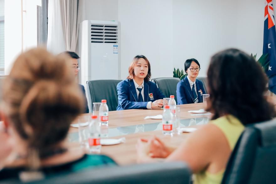 随后,在西塔师生的热烈欢迎中,客人们来到利来国际 参观,并与师生座谈交流。西塔学子向澳大利亚的客人们简要分享自己在西塔学习的所感所想。贺蓉歌女士表示同学们英语很好,学习也非常用功。格蕾塔·多琪女士希望西塔学子们朝着目标奋斗,一定能成为具有全球择业能力的创意精英。